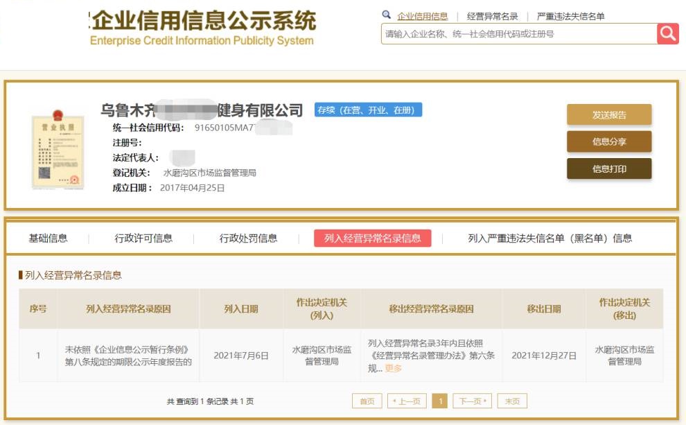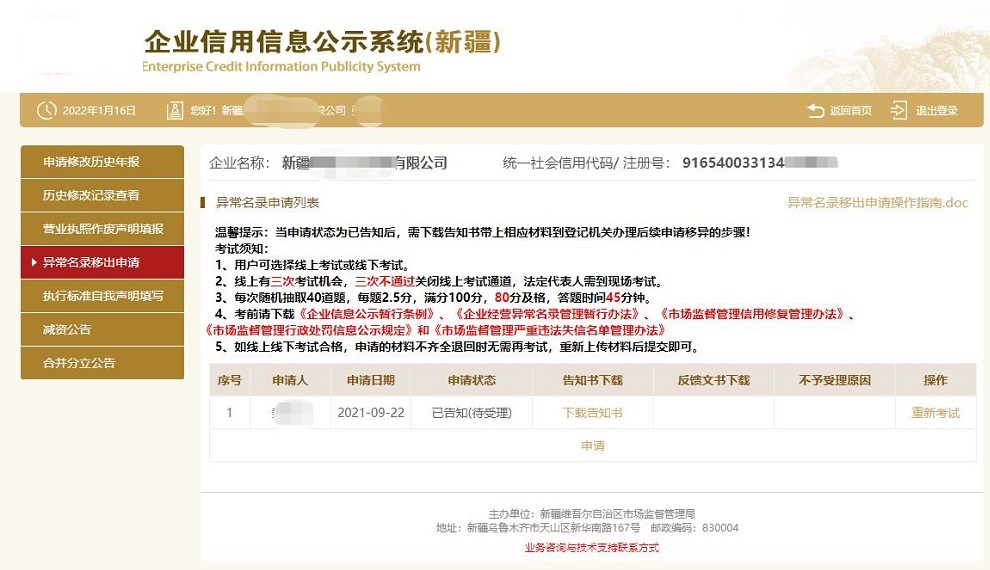 第四步:提交申请5个工作日内,企业顺利移出异常名录,恢复正常: